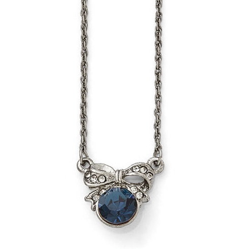 Buy silver-tone Downton Abbey blue crystal bow necklace. Weight: 4.86 grams. Pendant dimensions: 5/8in x 3/4in. Fancy lobster clasp. Necklace length is adjustable from 16in to 19in. Officially licensed Downton Abbey merchandise. Includes Downton Abbey themed gift box. Nickel-free. Made in USA.