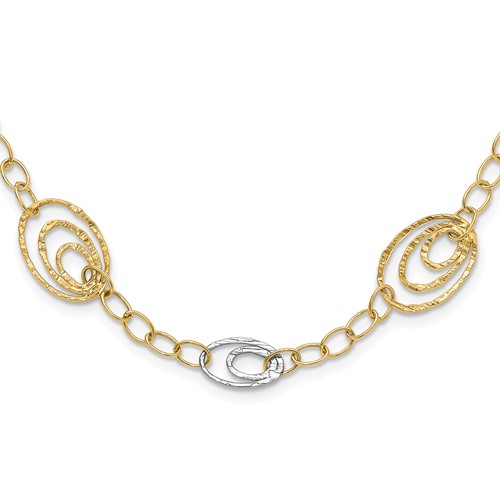14k yellow gold necklace has 14k white gold open oval links. Necklace length: 17in with 2in extension. Fancy lobster clasp. Weight: 4.0 grams. Made in Italy. Ships from USA.