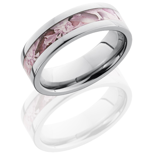 This flat titanium ring features a King's Pink Shadow camo inlay. Width: 6mm. This camouflage ring has polished edges. Deluxe comfort fit ring is handcrafted in the USA. Please use a narrow ring sizer when sizing your finger. Ring is available in finger sizes 3 to 16. This ring is officially licensed by King's Camo.
