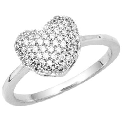1/4 ct diamond pave heart promise ring is made of polished sterling silver. Diamond color G-H, clarity I1-I2. Available in finger sizes 5-10, whole sizes only. Imported. Standard fit.