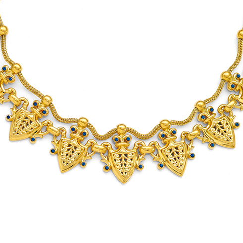Jacqueline Kennedy french herald necklace is made of 18kt gold mixed metal. 76 Swarovski elements, 19.5in long with lobster clasp and 3in extension.