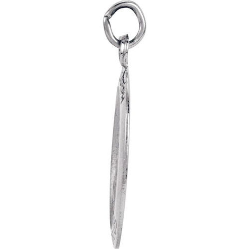 Polished 14kt white gold. Husband to Mary and foster father to Jesus. Scripture records little about him except to say that he was a just man. He was privileged to receive four visits from angels, and always promptly acted on their commands. Dimensions: 15x11mm. This item is smaller than a dime. Weighs .96 grams. Please note: weight is approximate, actual weight may vary. Chain not included.