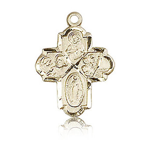 This die struck, hand-engraved four way medal is made of polished, solid 14k yellow gold. Dimensions: 3/4in x 1/2in. This item is the size of a penny. Made in USA.