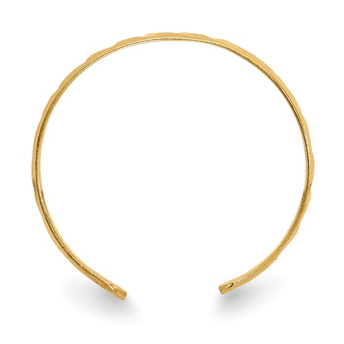 Diamond-cut toe ring is made of polished 14kt yellow gold. Width: 2mm. Weight: 0.38 grams. Made in the USA. Available while supplies last.