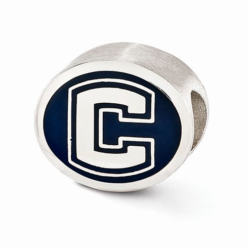 University of Connecticut bead is made of enamel and sterling silver. Two-sided design, bead hole diameter is 4mm. Made in the USA. Officially licensed product. Item size: 11mm x 10mm. Weight: 3.8 grams. This bead is compatible with all major personalized bead bracelet systems.