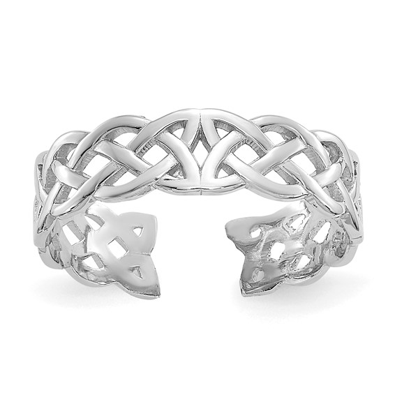 Celtic knot toe ring is made of polished solid 14k white gold. Toe ring width: 4mm. One size fits most women. Weight: 0.9 gram. Made in Peru. Ships from the USA.