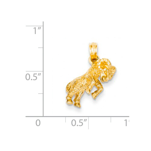 This 14kt yellow gold Aries zodiac sign charm is three dimensional. Item size: 5/8in x 1/2in. Weight: 2.0 grams. Made in the USA.
