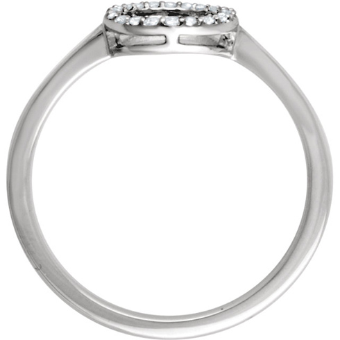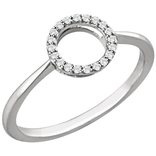 1/10 ct diamond circle ring is made of polished 14kt white gold. Diamond details: 20 round diamonds, H color, I1 clarity. Ring top width: 8.3mm. Ring palm width: 1.4mm. Item weight: 1.5 grams.