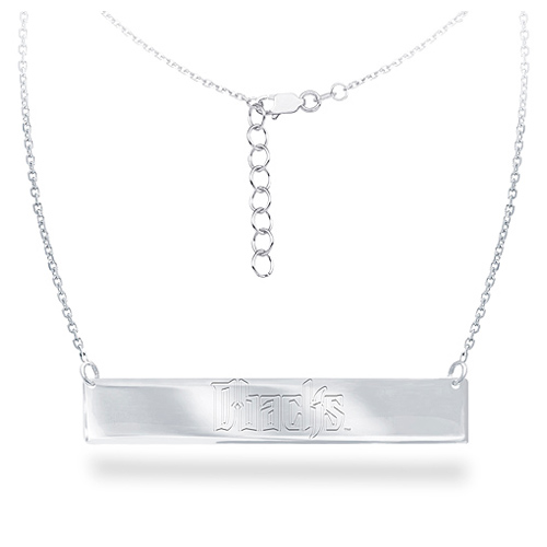 Sterling silver Arizona Diamondbacks bar shaped necklace dangles from an adjustable 16 to 18in diamond cut cable chain with lobster clasp. Pendant dimensions: 1 3/8in x 1/4in. Weight: 2.7 grams. Officially licensed. Import.