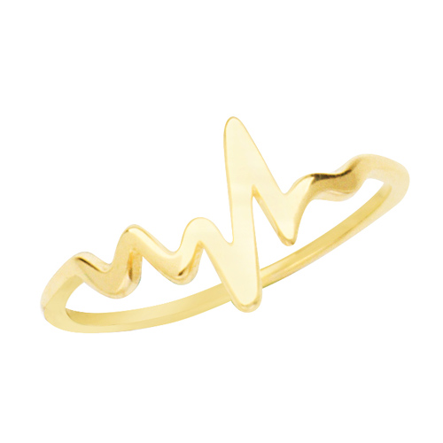 Heartbeat symbol ring is made of 14kt yellow gold. High polish finish. Standard fit. Weight: 1.35 grams. Import.