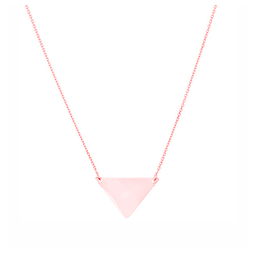 14k rose gold polished triangle pendant dangles from an adjustable 16 to 18in diamond cut cable chain and lobster clasp. Pendant dimensions: 1/2in x 3/8in. Weight: 2.2 grams. Import.