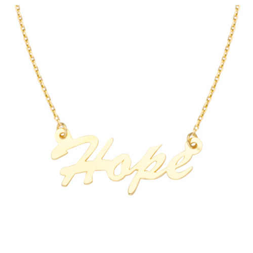 14kt yellow gold Love pendant dangles from an adjustable 16 to 18in diamond cut cable chain and lobster clasp. Pendant dimensions: 3/4in x 1/4in. Weight: 1.8 grams. Import.