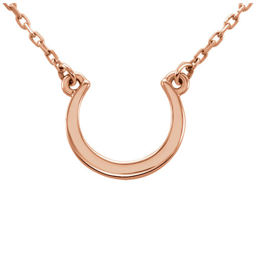 Polished 14kt rose gold crescent pendant dangles from a matching 18in cable chain. Pendant size: 10.5mm x 12.4mm. Chain width: 1mm. Spring ring clasp. Approximate weight: 1.5 grams. Made in the USA.