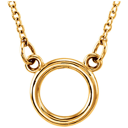 Polished 14kt yellow gold tiny posh open circle pendant dangles from a matching 18in cable chain. Pendant size: 9mm x 9mm. Chain width: 1mm. Spring ring clasp. Approximate weight: 2.0 grams. Made in the USA.