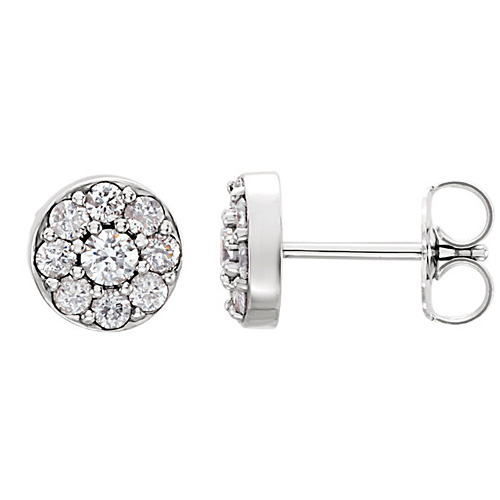 5/8 ct tw diamond round cluster earrings are made of polished 14kt white gold. Earring size: 7mm x 7mm. 18 round diamonds. G-H color, I1 clarity. Weight: 2.3 grams. Import.