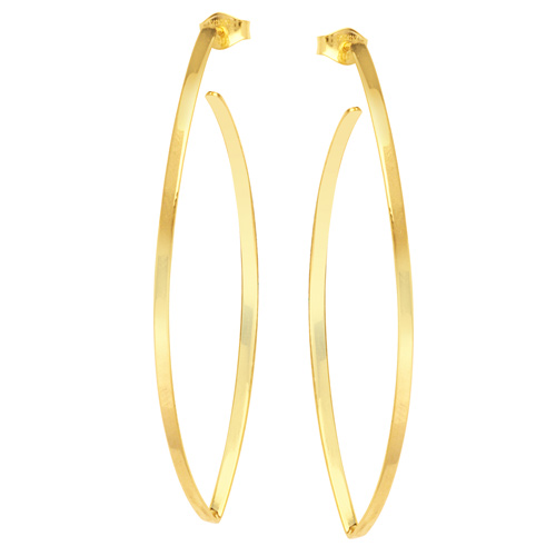 14k yellow gold Hawley St flat wire post earrings have a marquise shape and polished finish. Earring length: 2in. Weight: 2.8 grams. Made in Turkey. Ships from USA.