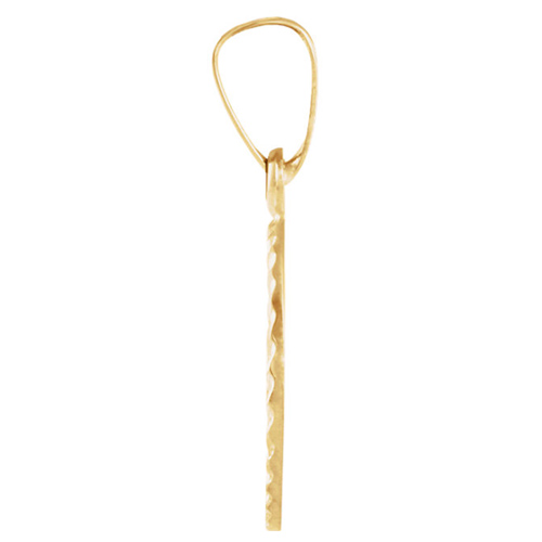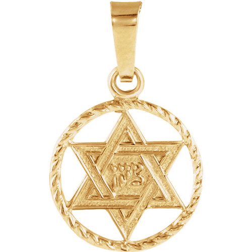 Round, braided Star of David charm is made of polished 14kt yellow gold. Dimensions: 14x11mm. This item is smaller than a dime. Weighs 0.48 grams. Please note: weight is approximate, actual weight may vary. Chain not included.