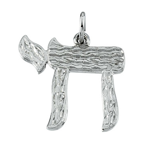 This men's solid sterling silver chai pendant has a textured finish. Dimensions: 27x28mm. Fits up to a 3mm wide chain. Approximate weight: 2.56 grams.