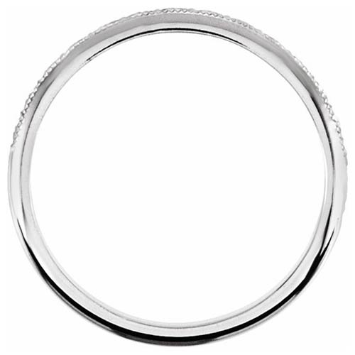 This hand engraved, slender 2mm wedding band with milgrain reveals the exquisite luster of platinum. Available in 5-8, whole and half finger sizes only. Standard fit. Hallmark PLAT on the interior. Size 7 band weighs approximately 2.6 grams. Made in the USA. This item is composed of 95% platinum and 5% iridium.