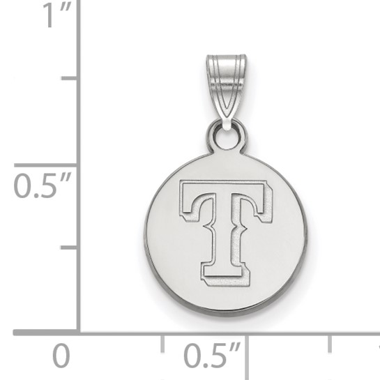 This very small Texas Rangers disc pendant is made of polished sterling silver. Item length: 13mm, width: 12mm. Officially licensed MLB jewelry. Weight: 1.6 grams. Made in the USA. Fits up to a 3mm chain.