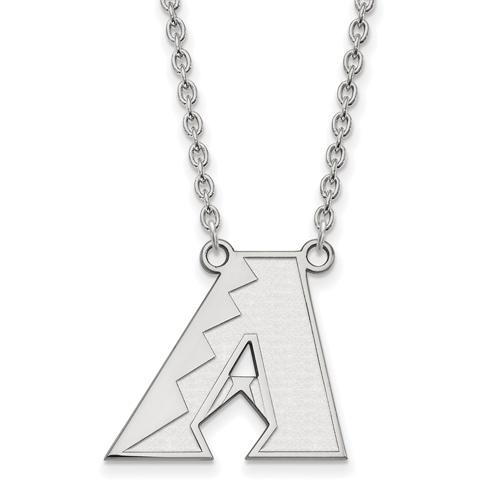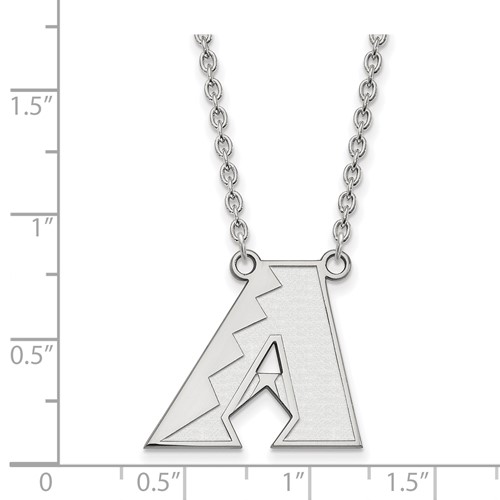 Arizona Diamondbacks pendant necklace is made of polished sterling silver. Pendant size: 18mm x 21mm. Pendant is the size of a dime. Sterling silver 18in cable chain with lobster clasp. Chain width: 1.95mm. Officially licensed MLB jewelry. Weight: 6.5 grams. Made in the USA.