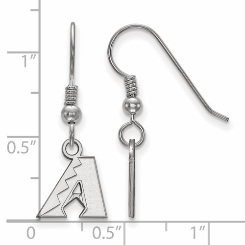 Arizona Diamondbacks extra small dangle wire earrings are made of polished sterling silver. Item length: 29mm, width: 11mm. Officially licensed MLB jewelry. Weight: 1.3 grams. Made in the USA.