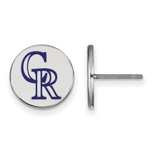 These small Colorado Rockies post enamel earrings are made of polished sterling silver with rhodium plating. Item length: 12mm, width: 12mm. Officially licensed MLB jewelry. Weight: 1.5 grams. Made in the USA.