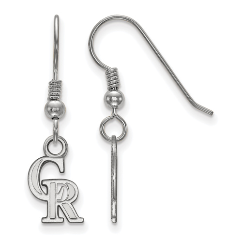 Colorado Rockies extra small dangle wire earrings are made of polished sterling silver. Item length: 29mm, width: 7mm. Officially licensed MLB jewelry. Weight: 1.3 grams. Made in the USA.