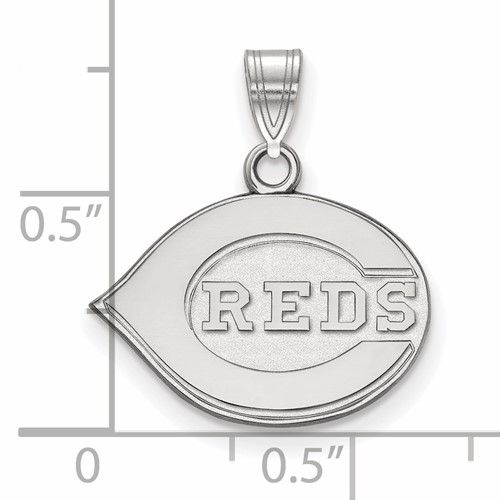 This Cincinnati Reds wishbone logo pendant is made of polished sterling silver. Item size: 1/2in x 3/4in. Officially licensed MLB jewelry. Weight:2.3 grams. Made in the USA. Fits up to a 3mm chain.