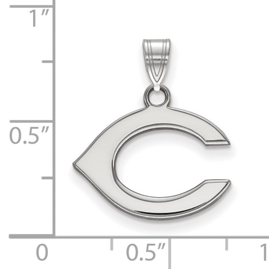 This very small Cincinnati Reds C pendant is made of polished sterling silver. Item size: 13mm x 16mm. Officially licensed MLB jewelry. Weight: 1.3 grams. Made in the USA. Fits up to a 3mm chain.