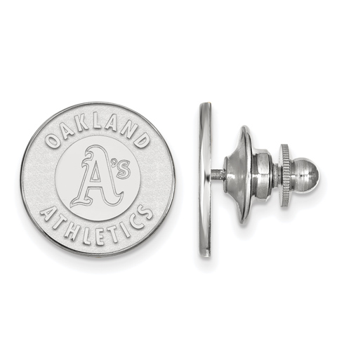 Oakland A's lapel pin is made of polished sterling silver. Item length: 15mm, width: 15mm. Officially licensed MLB jewelry. Weight: 1.5 grams. Made in the USA.