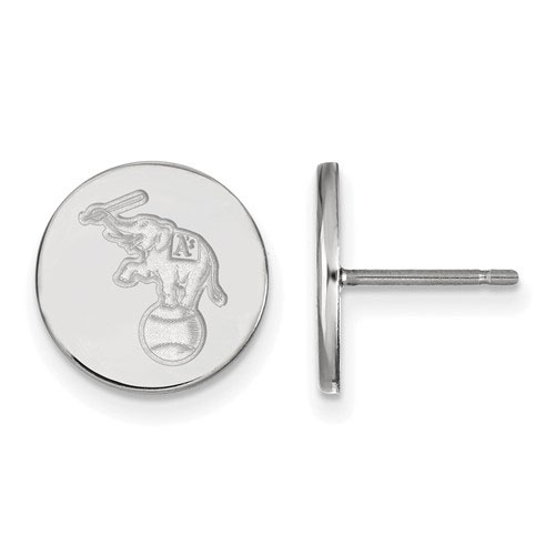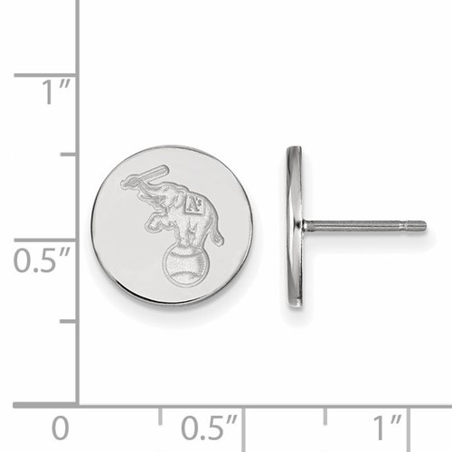 These small Oakland A's post earrings are made of polished sterling silver with rhodium plating. Item length: 12mm, width: 12mm. Officially licensed MLB jewelry. Weight: 2.3 grams. Made in the USA. Available while supplies last.