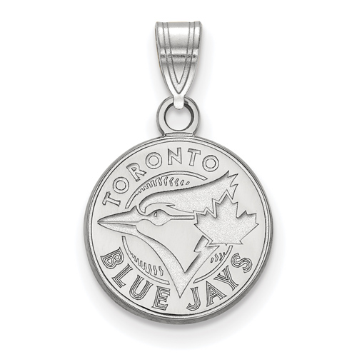 This round Toronto Blue Jays pendant is made of polished sterling silver. Item size: 13mm x 12mm. Officially licensed MLB jewelry. Weight: 2.3 grams. Made in the USA. Fits up to a 3mm chain.