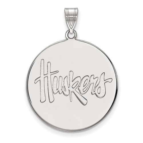 This large round University of Nebraska Huskers pendant is made of polished sterling silver. Item length: 1in, width: 1in. Officially licensed jewelry. Fits up to a 4mm wide chain. Weight: 6.0 grams. Made in the USA.