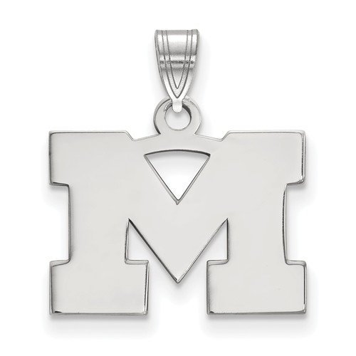This University of Michigan M pendant is made of polished sterling silver. Item height: 1/2in, width: 5/8in. Officially licensed jewelry. Weight: 2.4 grams. Made in the USA. Fits up to a 3mm chain.