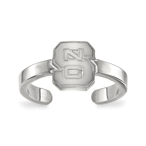 North Carolina State University toe ring is made of polished sterling silver. Item width: 8mm. Officially licensed jewelry. Weight: 1.48 grams. Made in the USA.
