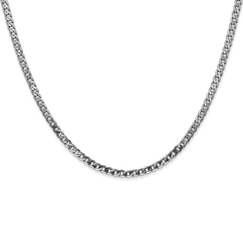 16in flat curb chain with lobster clasp is made of polished 14kt white gold. Item width: 2.9mm. Solid 14k white gold chain is rhodium-plated to resist tarnishing and scratches. Weight: 5.7 grams. Import.