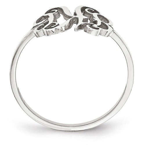 14kt white gold ladies' slender script monogram ring is made to order and features a polished finish. Enter the letters you want in left to right order. Top width: 10mm. Weight: 1.6 grams. Made in the USA.