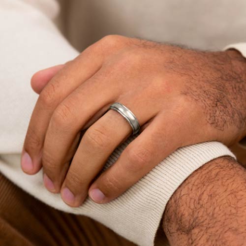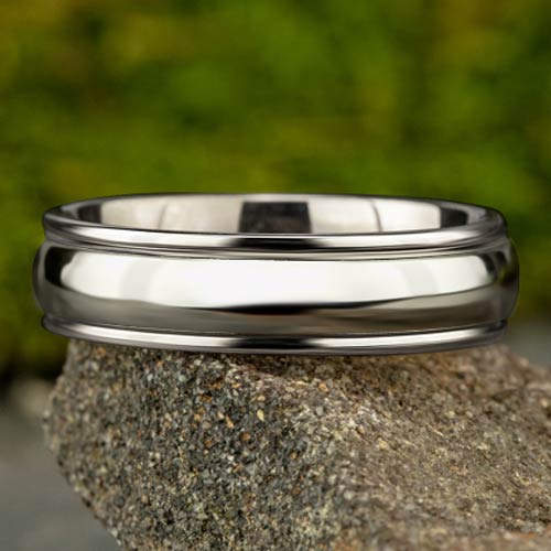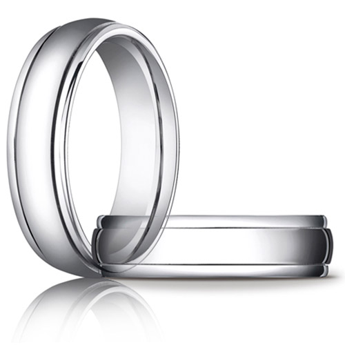 This 6mm comfort fit platinum wedding band has step down edges. Polished finish. Die struck. Thickness: 2mm. Solid platinum 950 [95% Platinum, 5% Ruthenium alloy]. Made in USA.