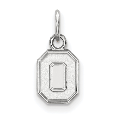 This extra small Ohio State University block O pendant is made of polished 10k white gold. Item length: 10mm, width: 7mm. Officially licensed jewelry. Weight: 0.5 grams. Made in the USA. Fits up to a 1mm chain.