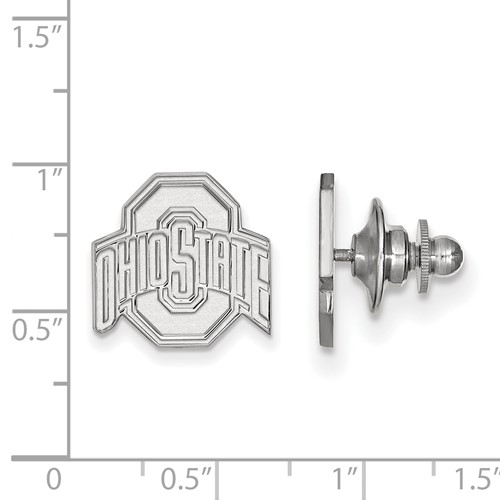 Ohio State University lapel pin is made of polished 14k white gold. Item length: 15mm, width: 15mm. Officially licensed jewelry. Weight: 2.0 grams. Made in the USA.