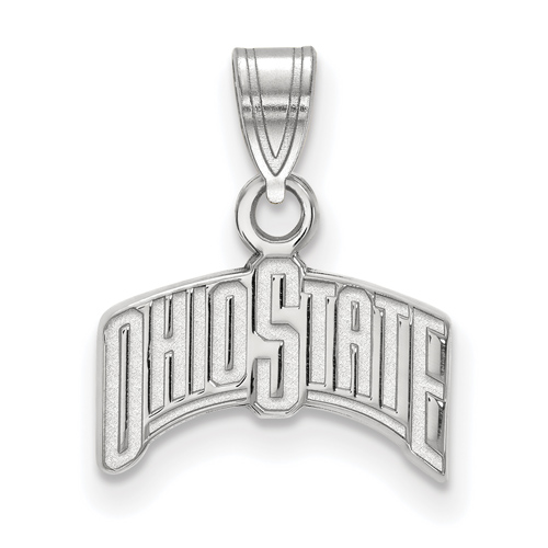 The small Ohio State University arched pendant is made of polished 14k white gold. Item length: 10mm, width: 13mm. Officially licensed jewelry. Weight: 0.7 grams. Made in the USA. Fits up to a 3mm chain.