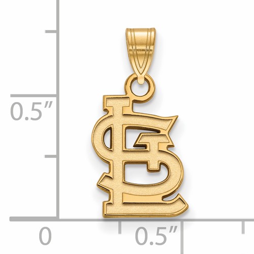 St. Louis Cardinals small pendant is made of polished 10k yellow gold. Item length: 12mm, width: 9mm. Officially licensed MLB jewelry. Weight: 0.6 gram. Made in the USA.