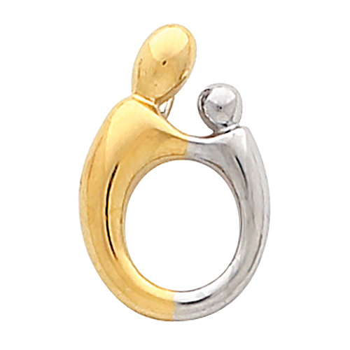 Polished 14kt yellow and white gold. Dimensions: 20.5mm long and 13.5mm wide. Weighs 1.25 DWT (1.94 grams). Please note: weight is approximate, actual weight may vary. Chain not included. Hollow back.