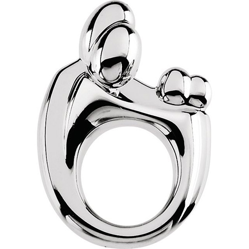 Polished solid 14k white gold mother and child family and twins pendant is designed by Janel Russell. Dimensions: 20.25mm x 14mm. Fits up to a 2.5mm wide chain. Rhodium-plated. Weighs approximately 2.3 grams. Please note: weight is approximate, actual weight may vary. Chain not included. Hollow back.