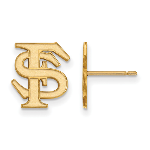 These small Florida State University FS post earrings is made of polished 10k yellow gold. Item length: 12mm, width: 11mm. Officially licensed jewelry. Weight: 1.3 grams. Made in the USA.