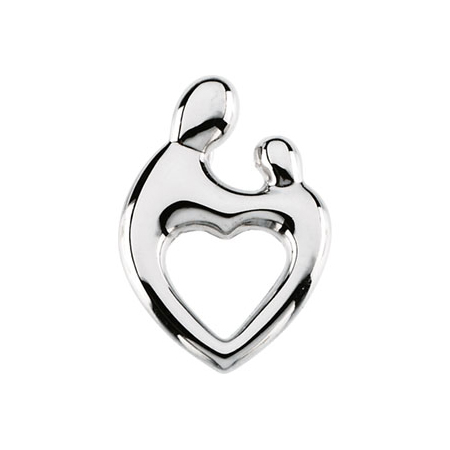Mother & Child heart pendant is made of polished 14kt white gold. Dimensions: 3/4in x 1/2in. Hidden bail fits up to a 2mm wide chain. Item weight: 0.93 grams. Please note: weight is approximate, actual weight may vary. Hollow back.