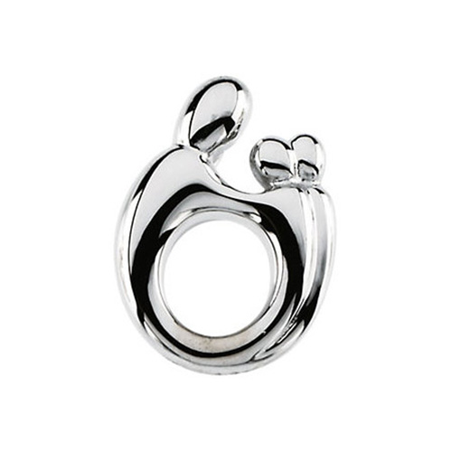 Mother and two children pendant is made of solid 14k white gold and designed by Janel Russell. Part of the mother and child collection. Dimensions: 19.75mm long and 13.5mm wide. This item is slightly larger than a penny. Rhodium-plated. Weighs 3.89 grams. Please note: weight is approximate, actual weight may vary. Chain not included. Solid back.