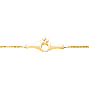 Polished solid 14k yellow gold mother and child bracelet is designed by Janel Rusell. Weighs 3.56 grams. Please note: weight is approximate, actual weight may vary.