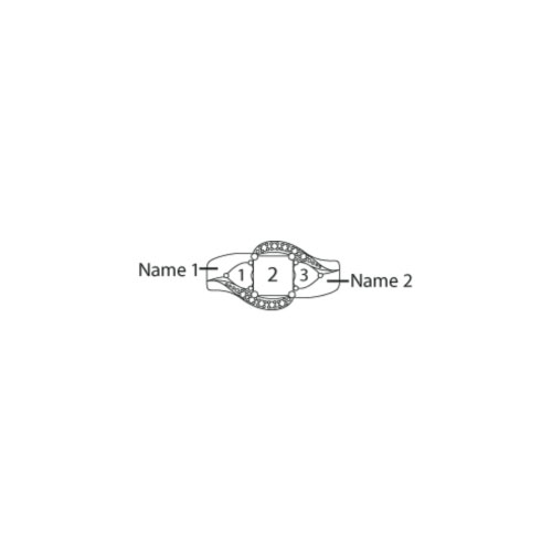 The 14k yellow gold Twinkle promise ring is set with a princess cut center stone, two heart shaped side stones, and two sweeping ribbons of cubic zirconia accents. Engrave up to 12 characters in each of two engraving areas. Ring top width: 11.3mm, palm width: 2.3mm. Imported.